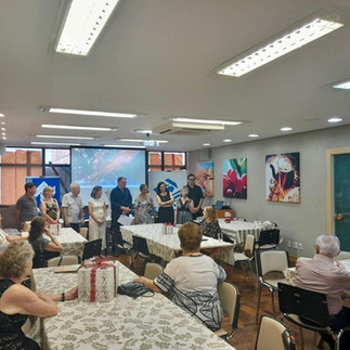 Durante encontro festivo na segunda-feira (15/12), os diretores da AGAFISP saudaram os instrutores e professores das diversas atividades e cursos desenvolvidos ao longo do ano. Além de um breve coquetel, houve apresentações do Canto Coral e de Dança, bem como manifestações dos professores de Inglês, Xadrez, Ginástica e Alongamento, Memória. Todas as atividades retornam em 2026.